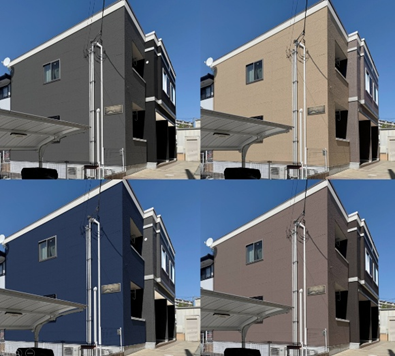 塗装前に建物の写真をもとに、複数の色パターンをシミュレーション。