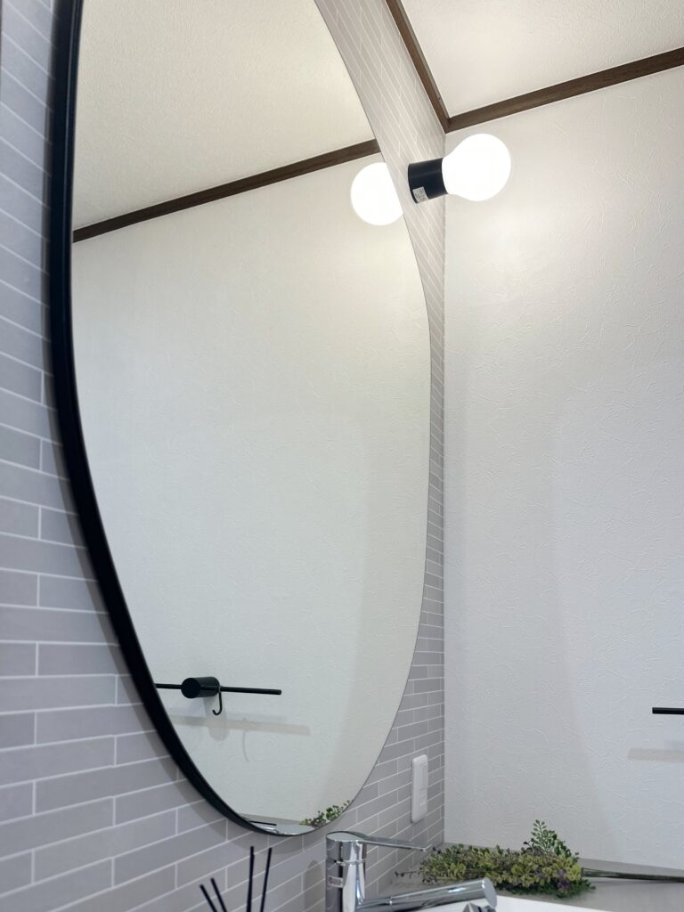 空間の印象を左右する大きなミラーは、最後まで悩まれたうえでお客様ご自身が選ばれた一枚。