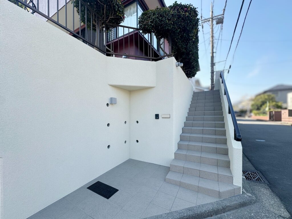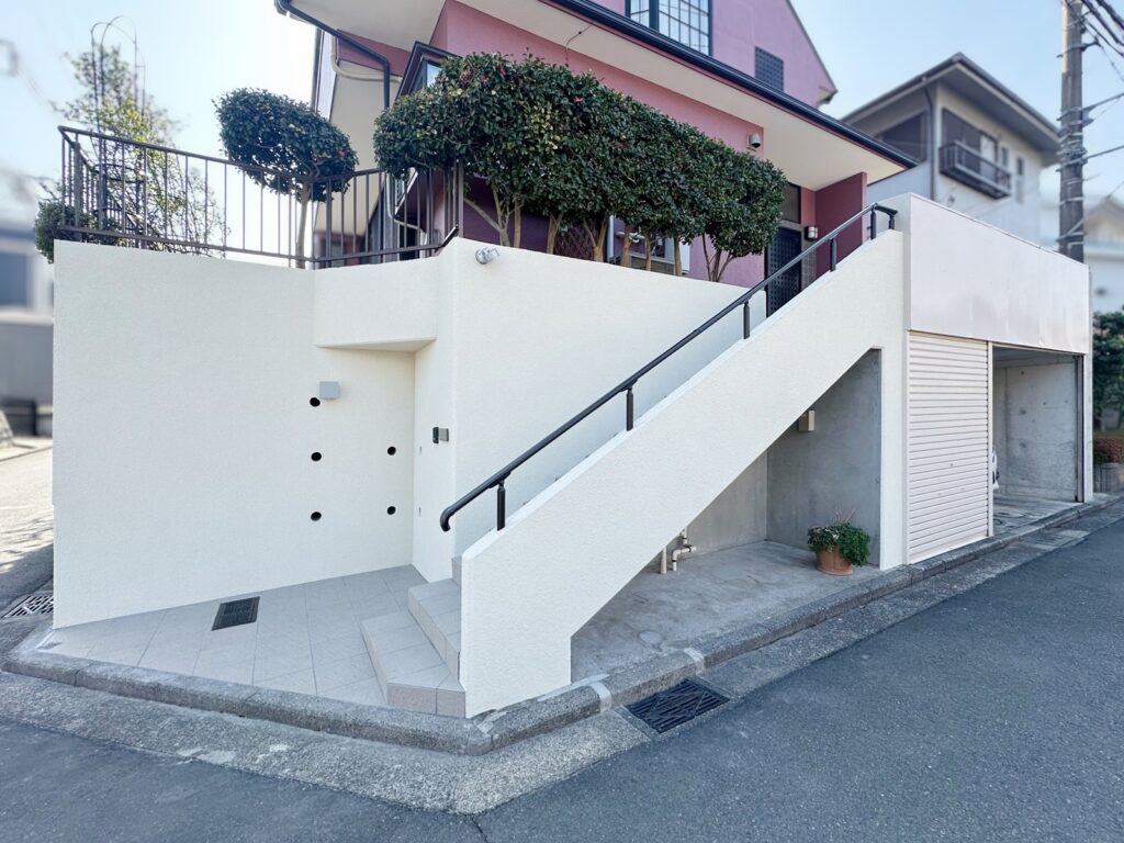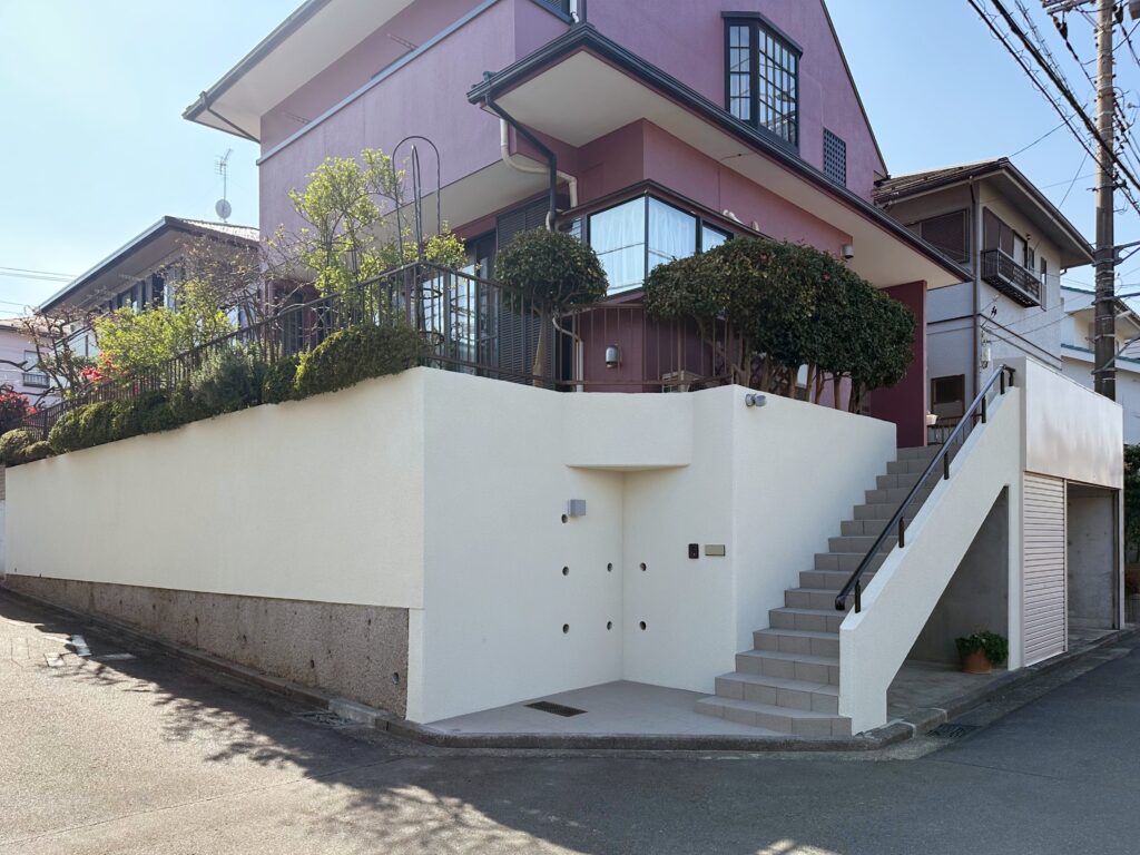 擁壁も塗装で整え、明るい色合いに仕上げ。