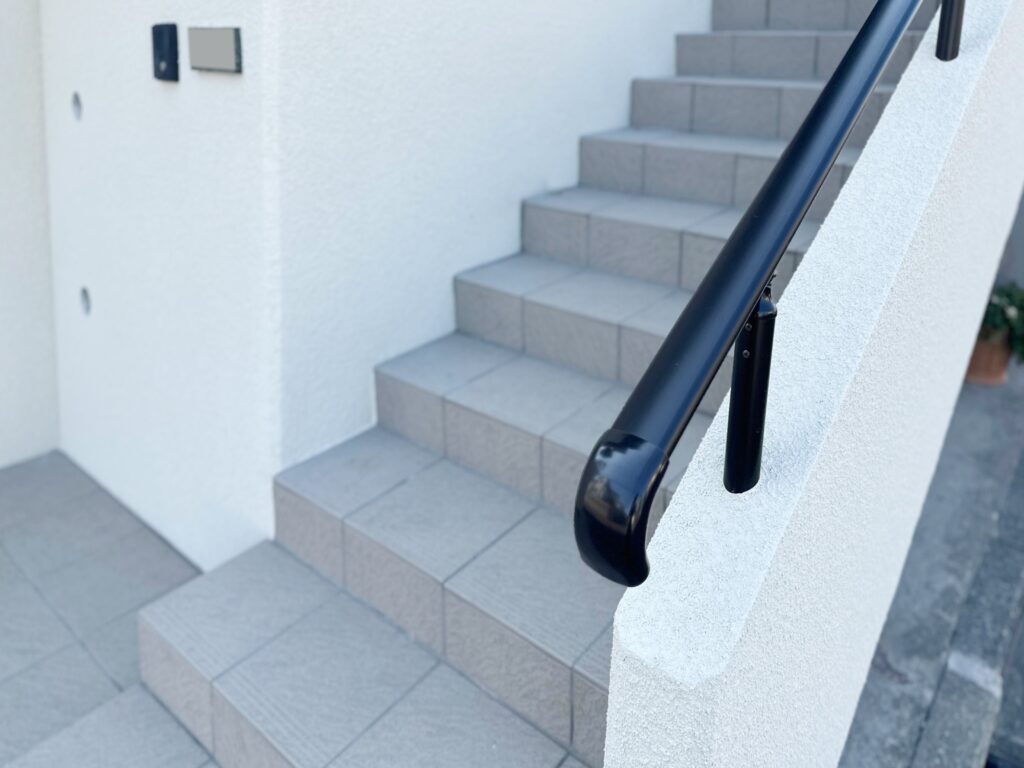 手すりは握りやすい太さとだ円形状で体をしっかり支えられ、ブラックで外観を引き締めるシックな仕上がりに。