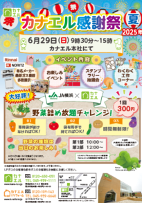 6月29日(日)横浜本社にてカナエル感謝祭を開催いたします。当日は最新機器や各種設備機器を展示し、当日限定価格でご提供させていただきます。